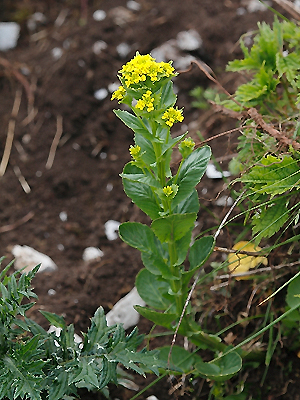 【漢字名】山芥子 【別名】ミヤマガラシ 【花期】5 8月 【分布】北海道・本州(東北,関東,中部,近畿) 【草丈】足首 ひざ【環境】山地・低山,高山・亜高山,河原・渓流,原野・草原,岩場・礫地