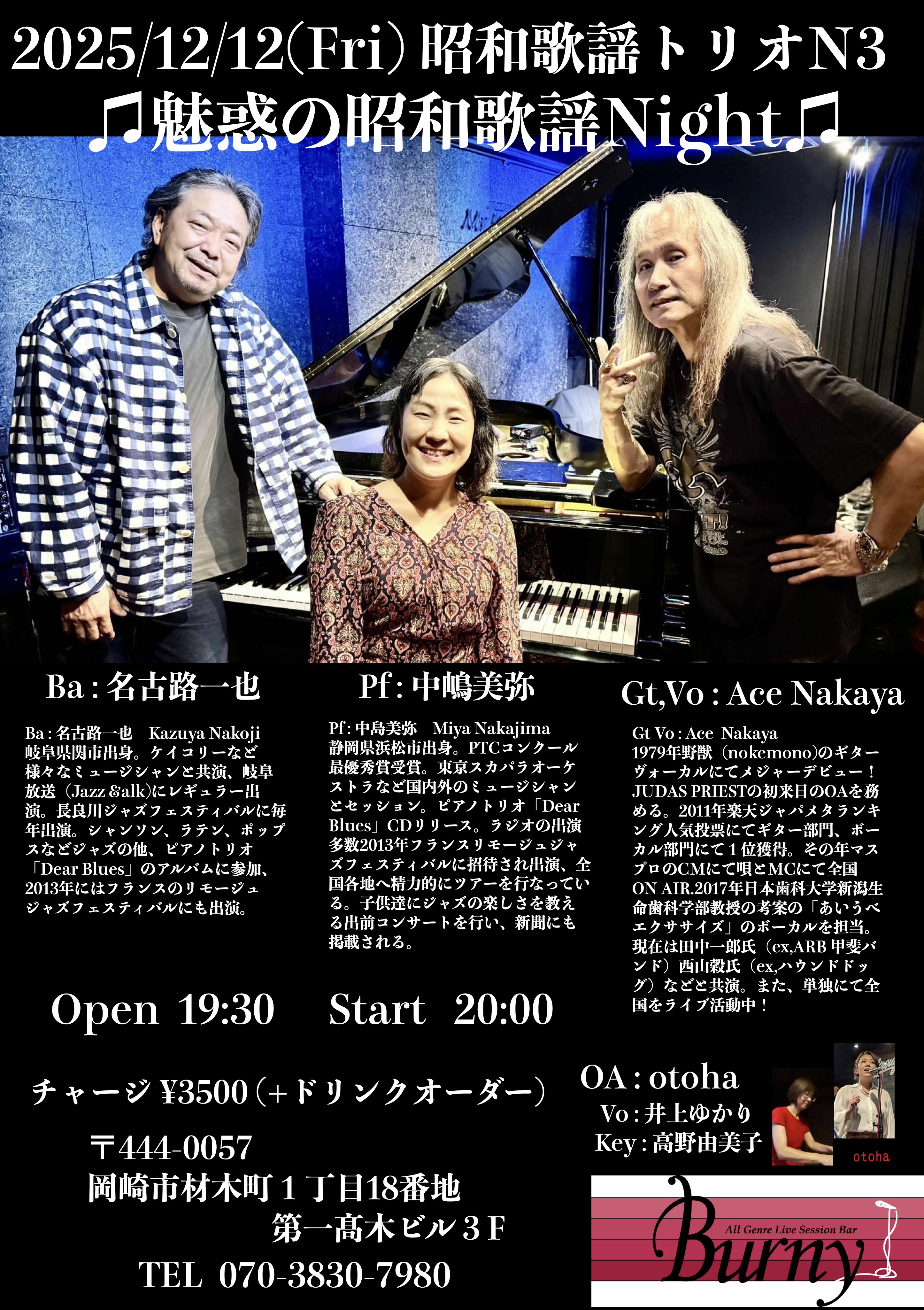12/12(金) 【 昭和歌謡トリオN3 ♫魅惑の昭和歌謡Night♫】