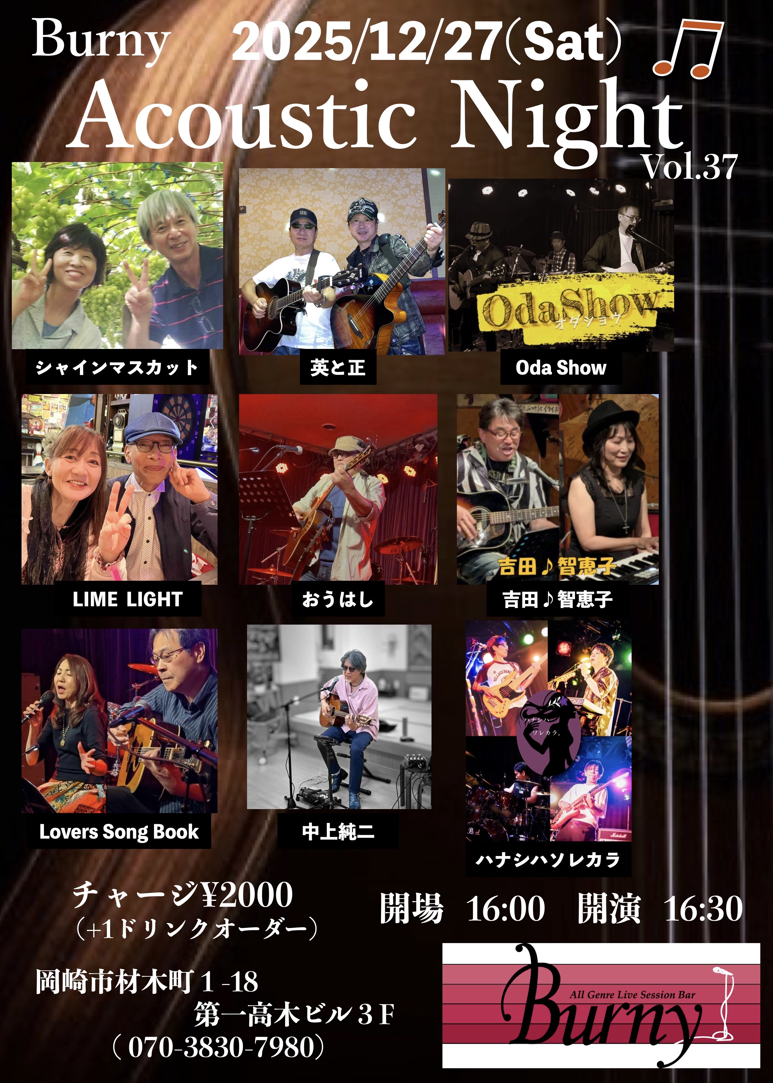 12/27(土) 【 Burny Acoustic Night Vol,37】