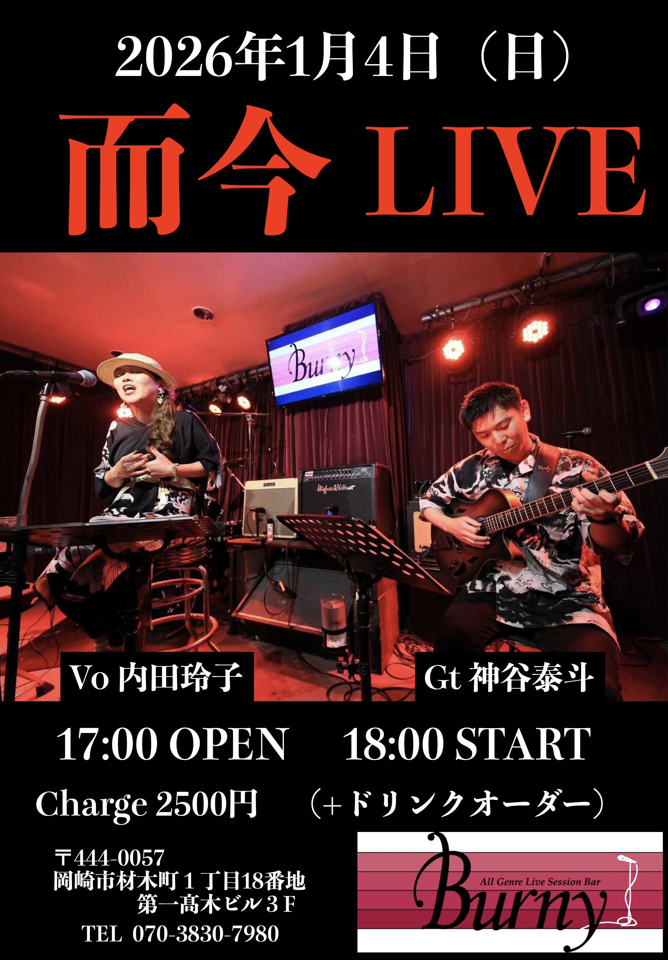 このライブを 而今ライブ(Vo 内田玲子 Gt 神谷泰斗)