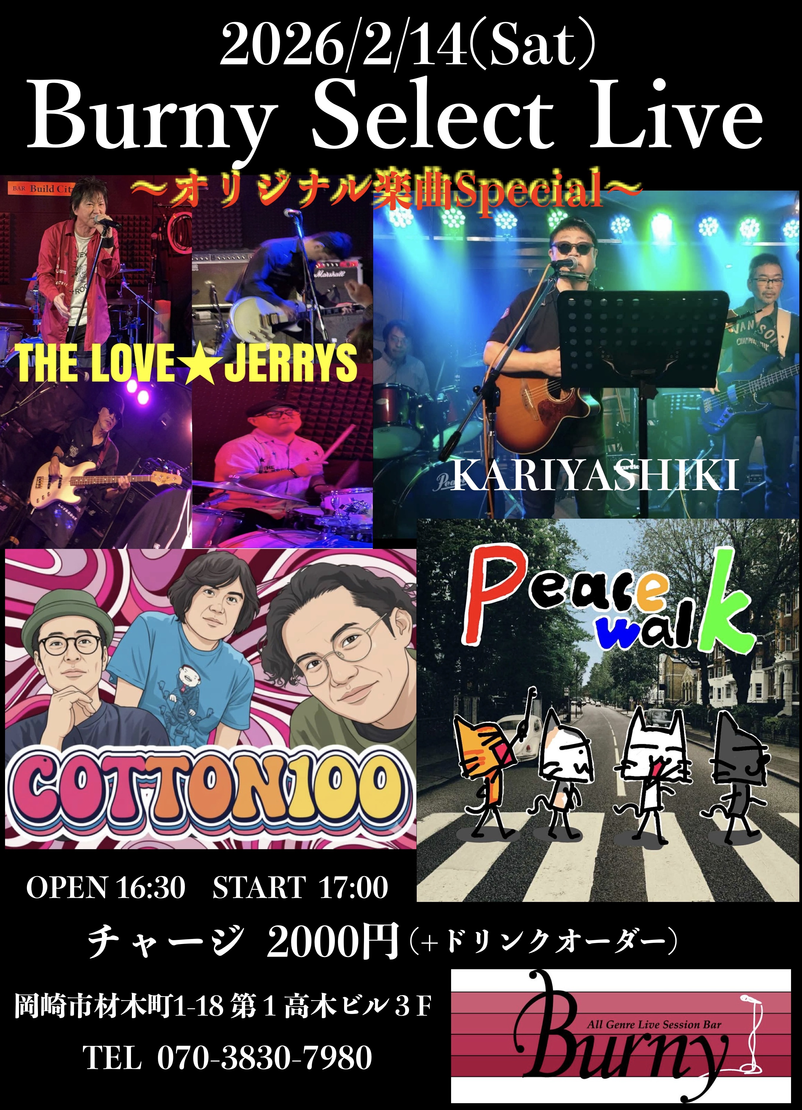 出演 KARIYASHIKI、cotton100、LOVE JERRYS、PEACE WALK