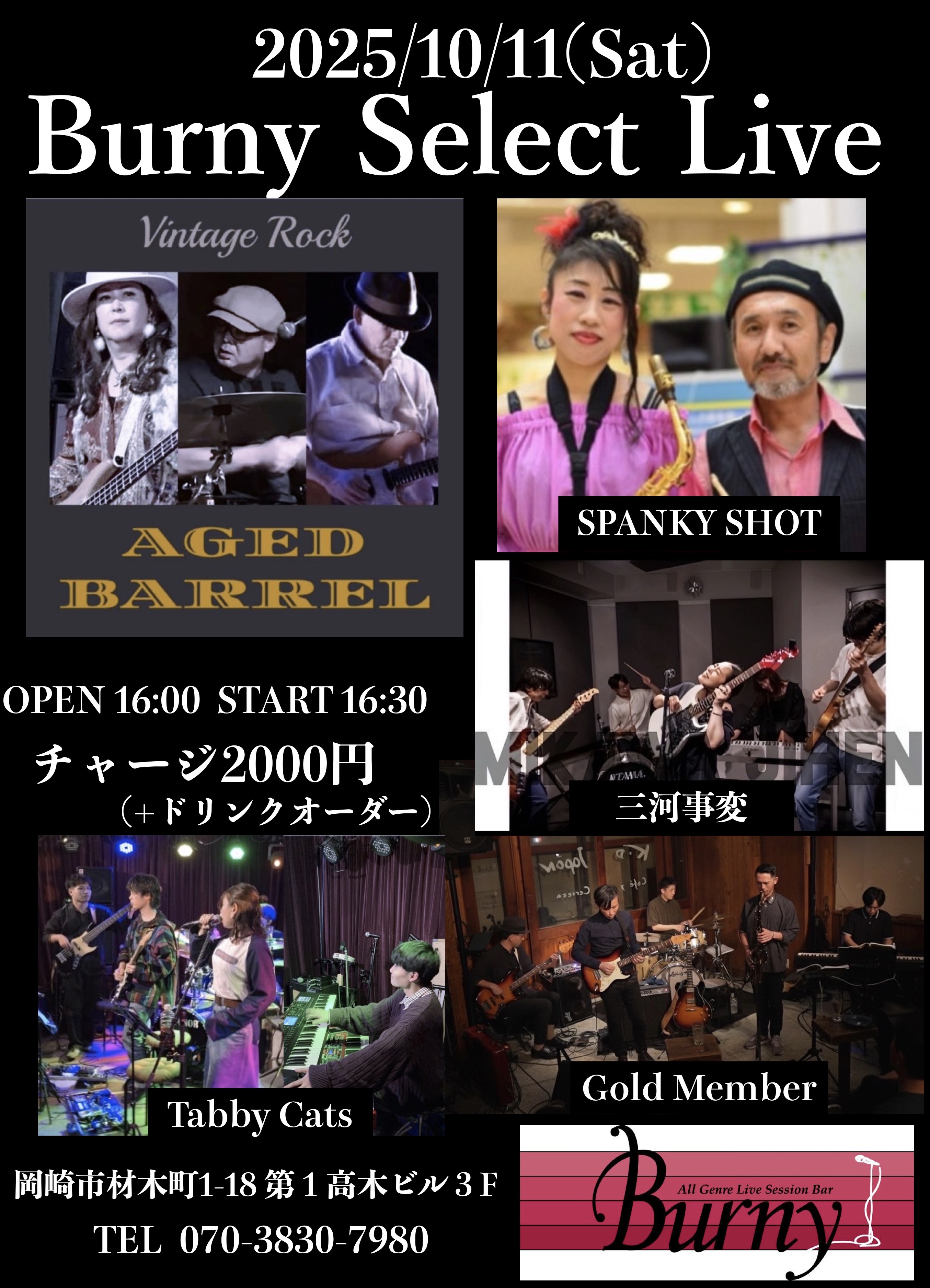 ![]() | 【ライブ】 バーニー 【岡崎市/愛知県】10/11(土)/2025 |