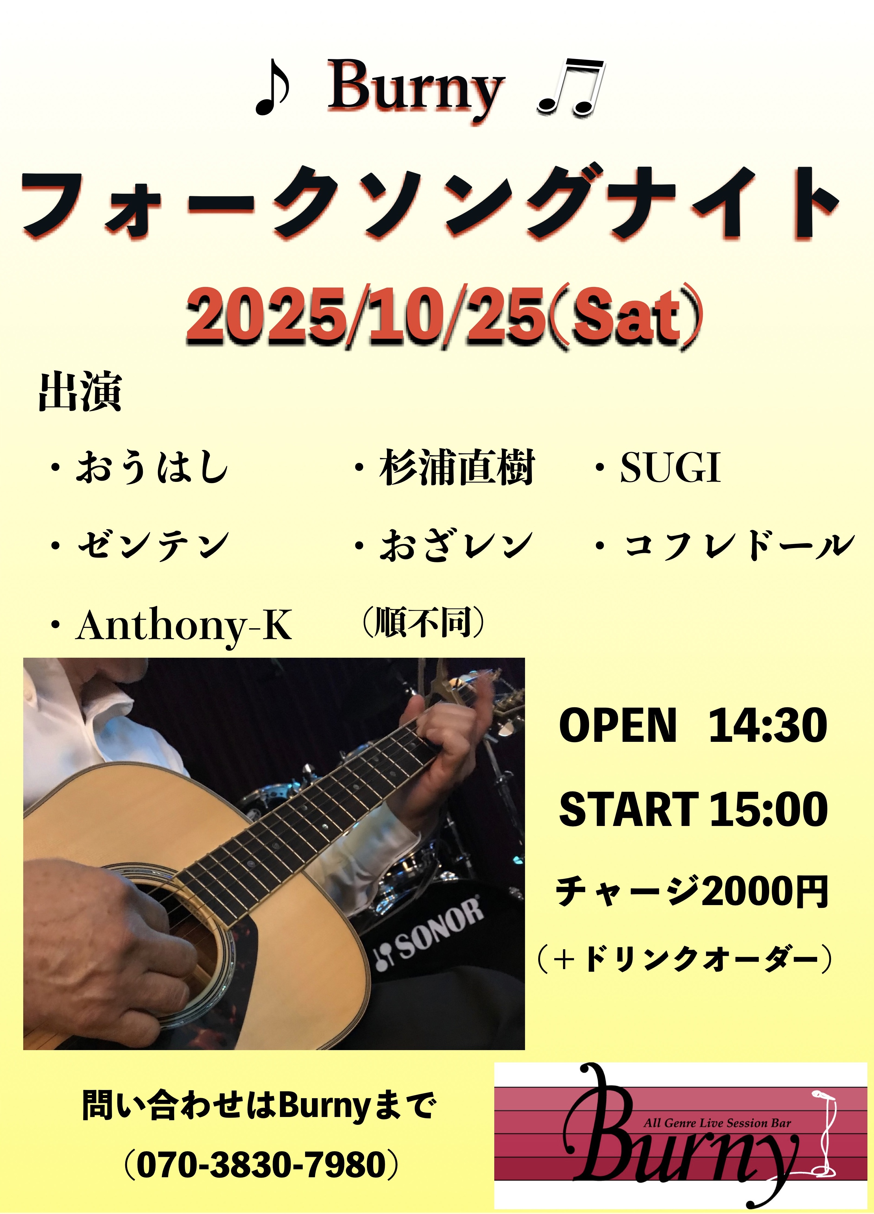 | 【ライブ】 バーニー 【岡崎市/愛知県】10/26(日)/2025 |