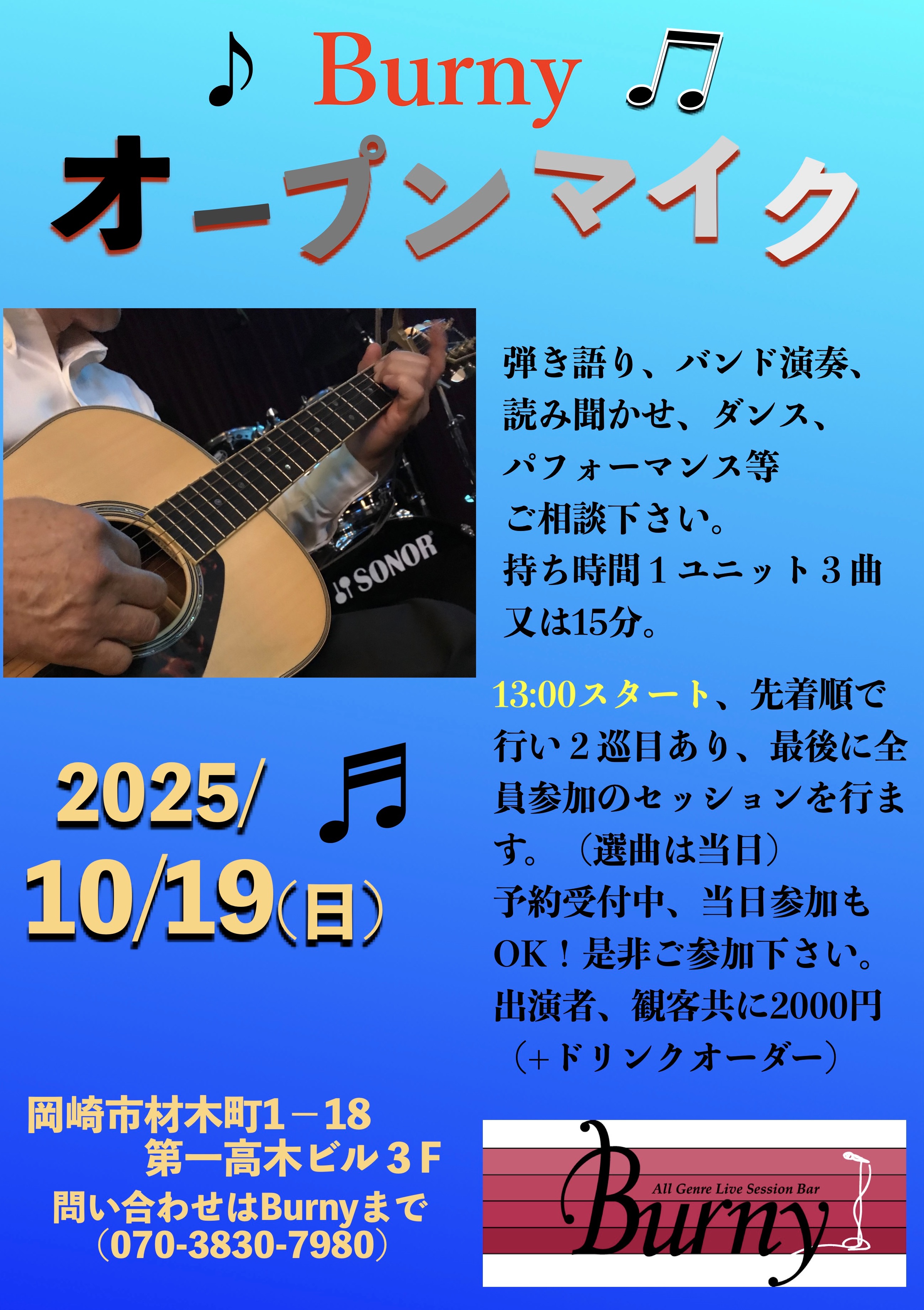 | 【ライブ】 バーニー 【岡崎市/愛知県】10/19(日)/2025 |